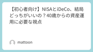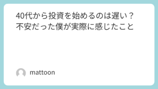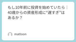 「もっと若いうちから投資を始めておけばよかった」40代になってから、何度もそう思いました。SNSやYouTubeを見れば、20代・30代で投資を始めて資産を大きく増やしている人がたくさんいる。正直、焦りもありました。一方で、「今さら始めても...