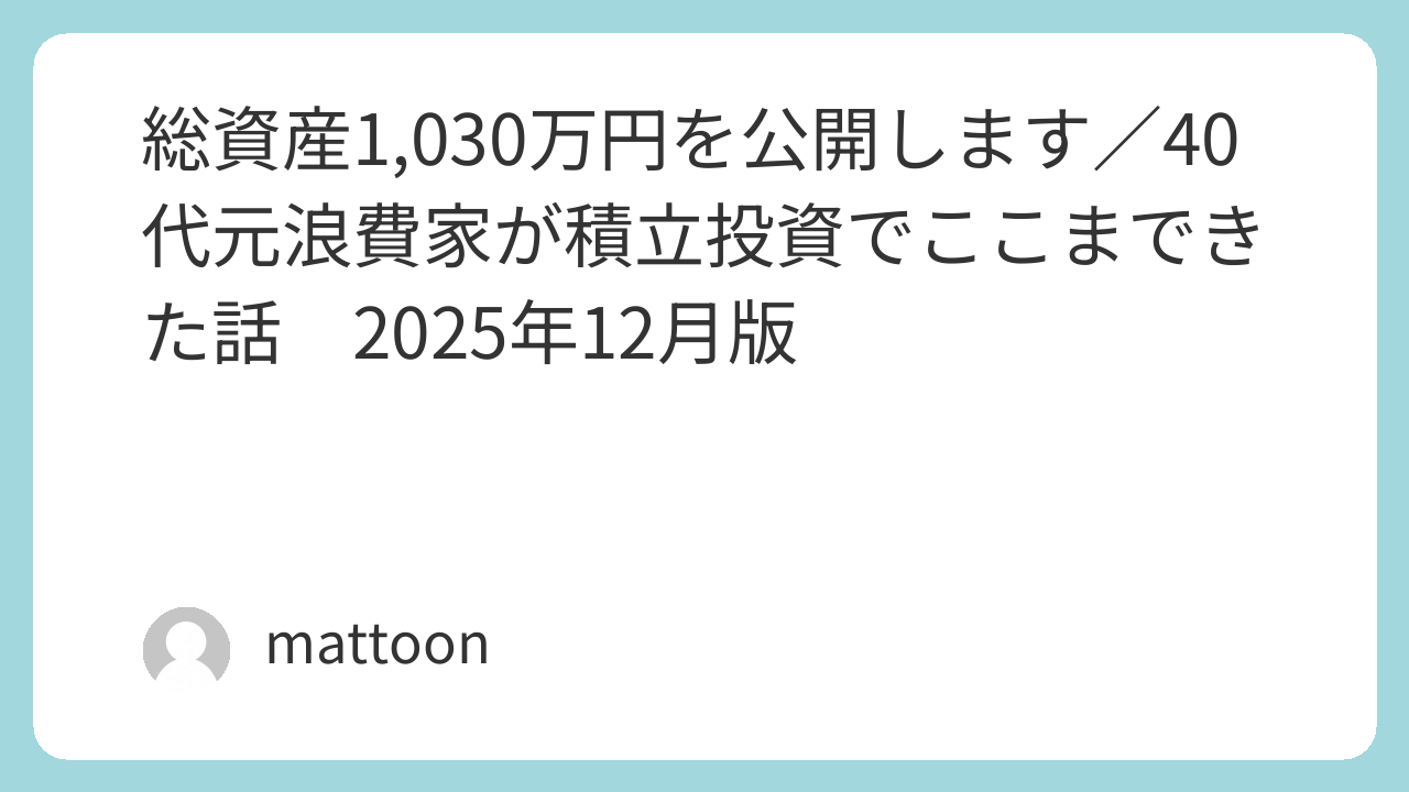 2025年12月現在、僕の総資産がついに1,000万円を突破しました。