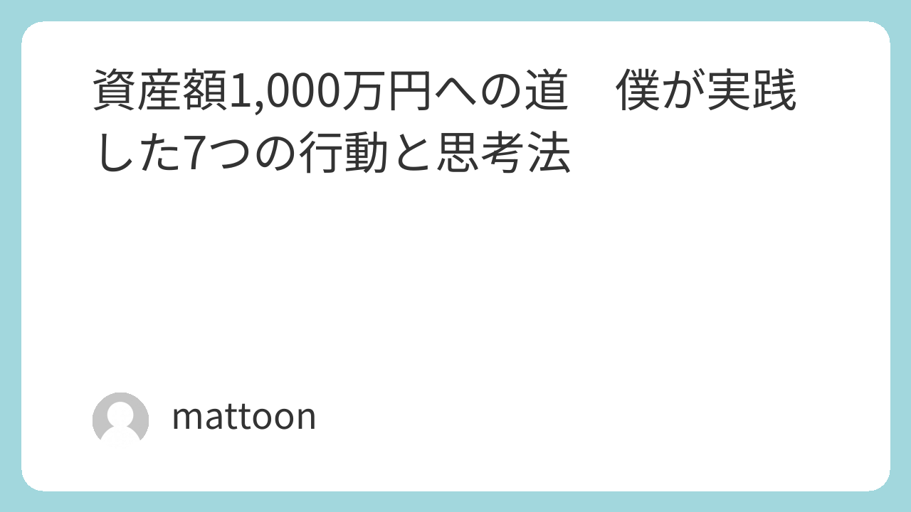 資産額1,000万円への道 僕が実践した7つの行動と思考法