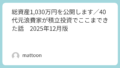 でもこの体験が、「もっと資産を育てたい」というモチベーションになったのは間違いありません。